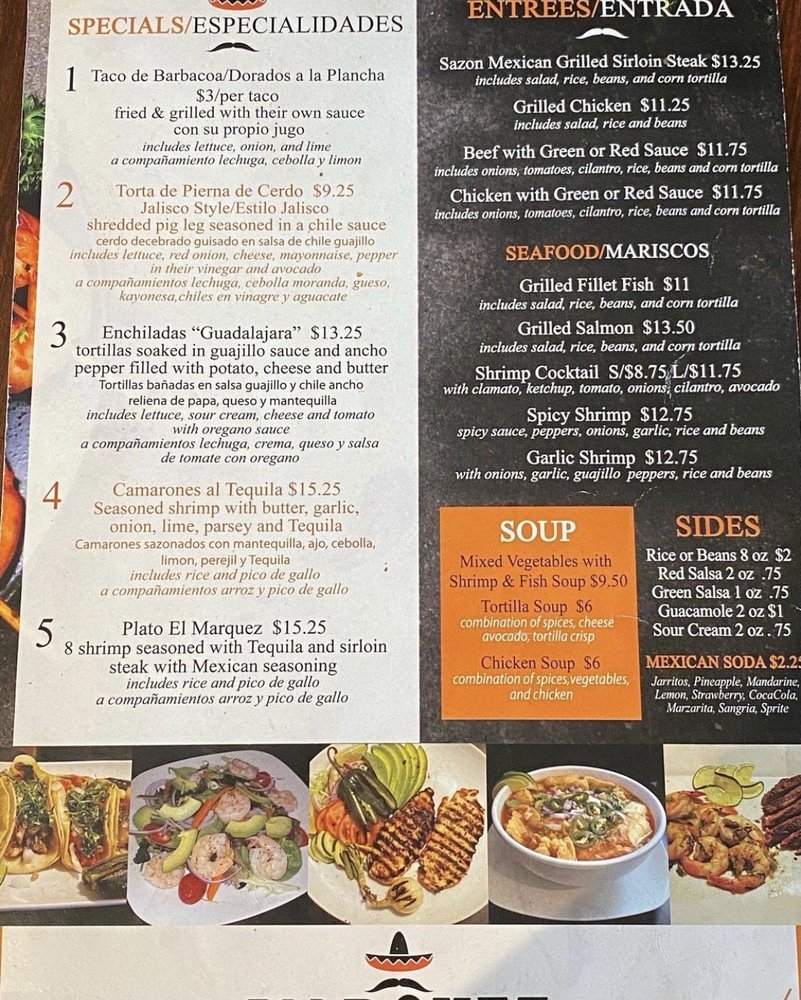Introducing the menu of Marquez Mexican Grill, located at 8 Railroad Ave, Hammonton, NJ, invites you to savor authentic Mexican cuisine that warms the heart and satisfies the palate. The standout Sopas Soups include the vibrant Tortilla Soup, a delightful combination of spices, epazote, and crisp tortilla topped with creamy avocado and queso fresco. For a hearty bite, try the Flautas, filled with shredded beef or chicken, each priced at just $6.85.